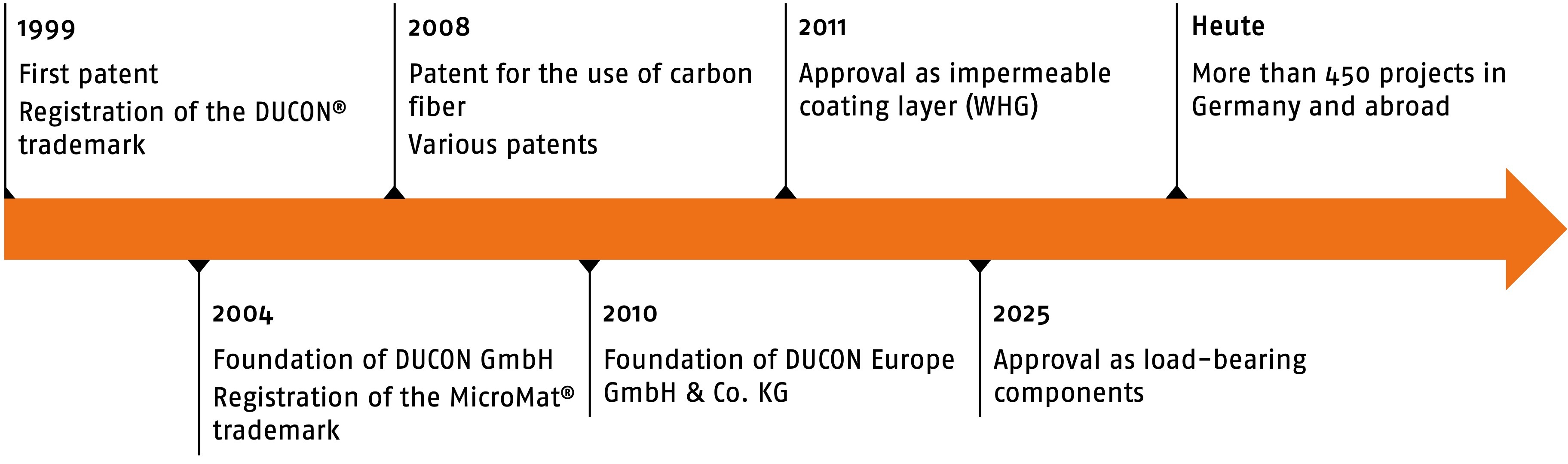 DUCON Europe GmbH & Co. KG is established for operational business, while DUCON GmbH holds the patents, trademarks, and intellectual property for the licensing business.